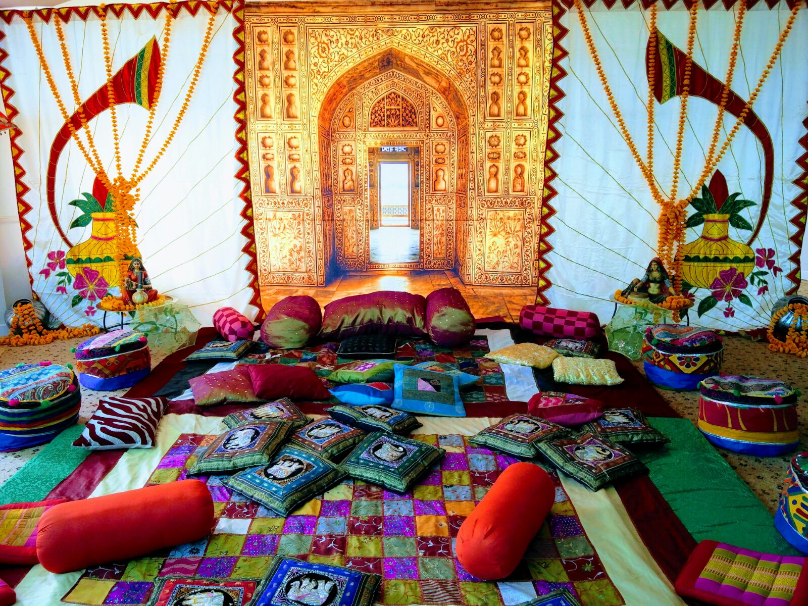 Vibrant Drapes and Fabrics: We offer a selection of colourful drapes and fabrics that add warmth and festivity to your venue, creating an inviting and celebratory atmosphere.